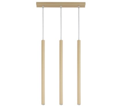 Złota, smukła lampa wisząca Filora w formie cienkiej rurki