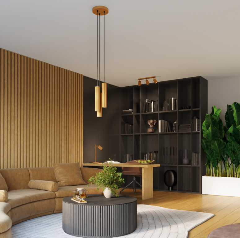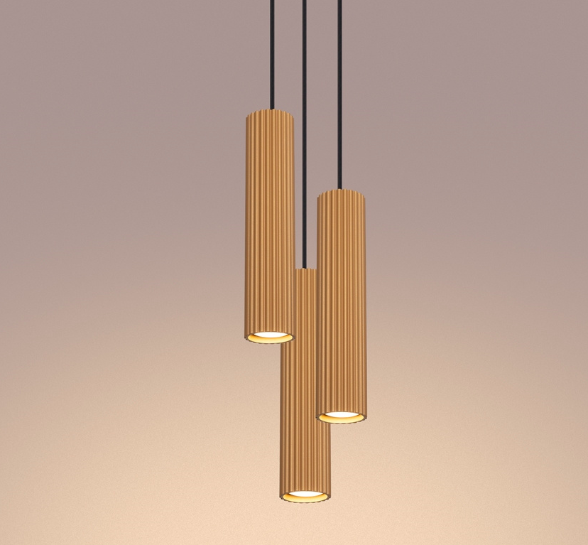Złota wisząca lampa sufitowa Karbon 3 w kształcie tub