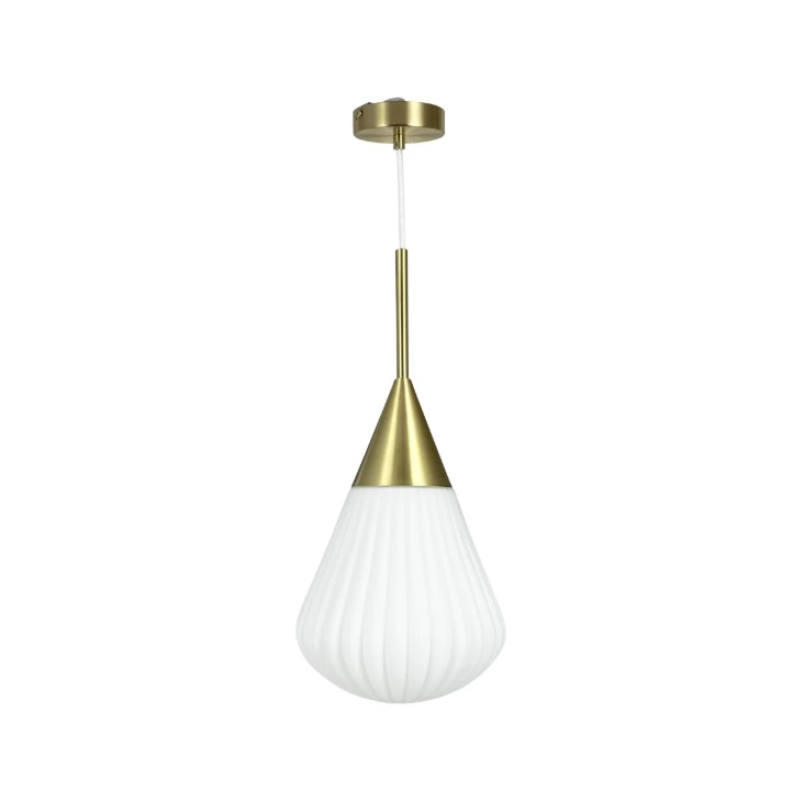 Złoto-biała lampa wisząca Ballon 21 z ryflowanym kloszem w kształcie kropli