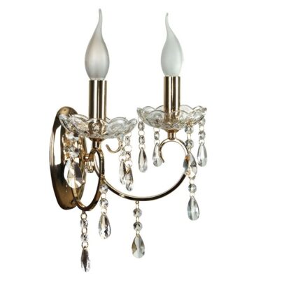 Złoty dwupunktowy kinkiet świecznikowy Aurora zdobiony kryształkami