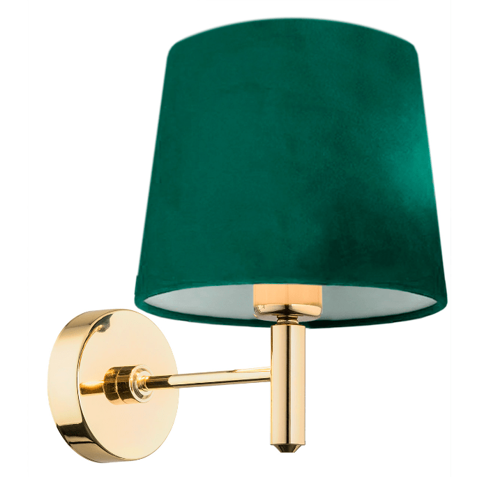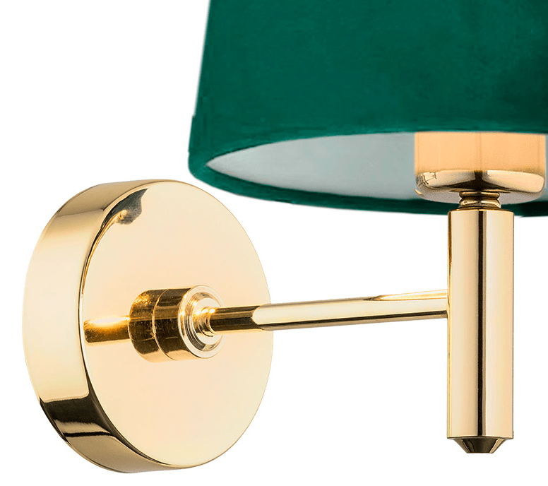Złoty elegancki kinkiet Ponte z welurowym zielonym abażurem