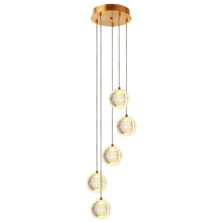 Złoty, elegancki żyrandol w stylu glamour Brillant 5 Light Prestige