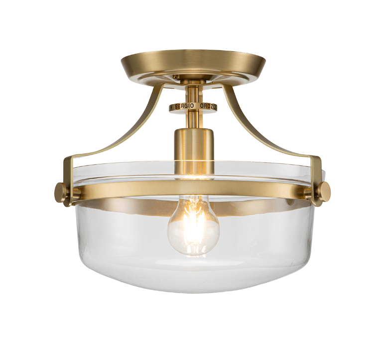 Złoty industrialny plafon Penn Station od Ardant Decor z przezroczystym kloszem