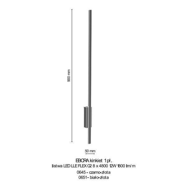 Napisz pierwszą opinię o „Złoty kinkiet Ebora w formie listwy z czarnym mocowaniem”