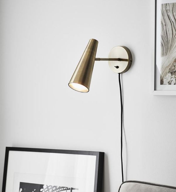 Złoty kinkiet Peak z włącznikiem w podstawie