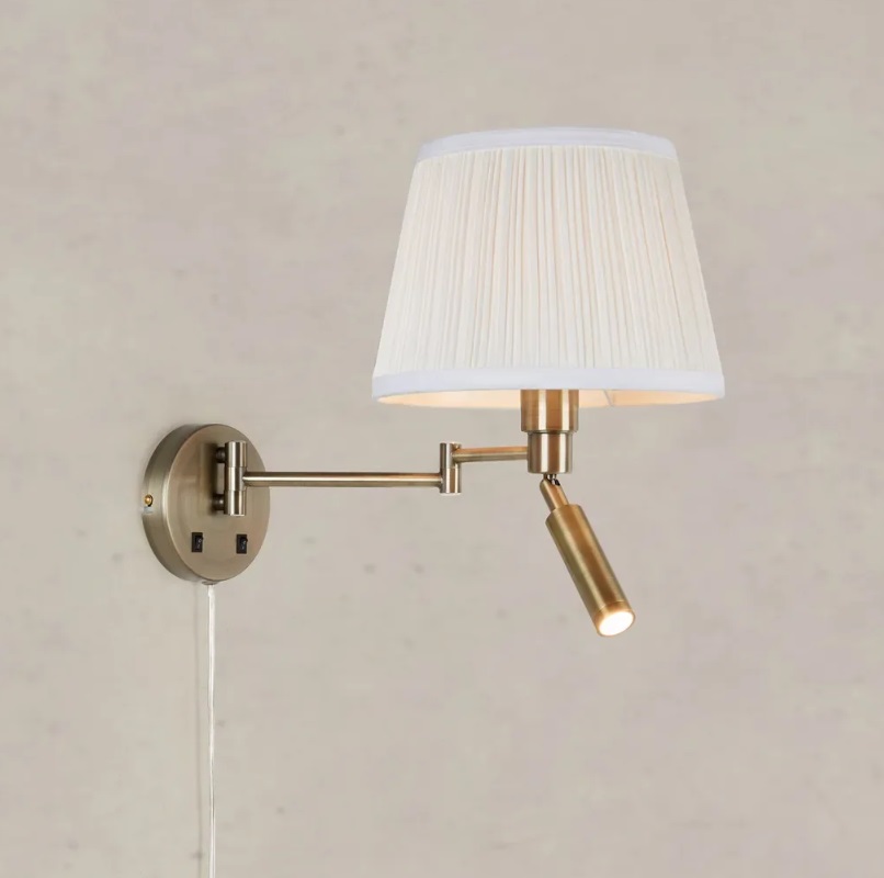 Funkcjonalny kinkiet z abażurem i reflektorem do czytania