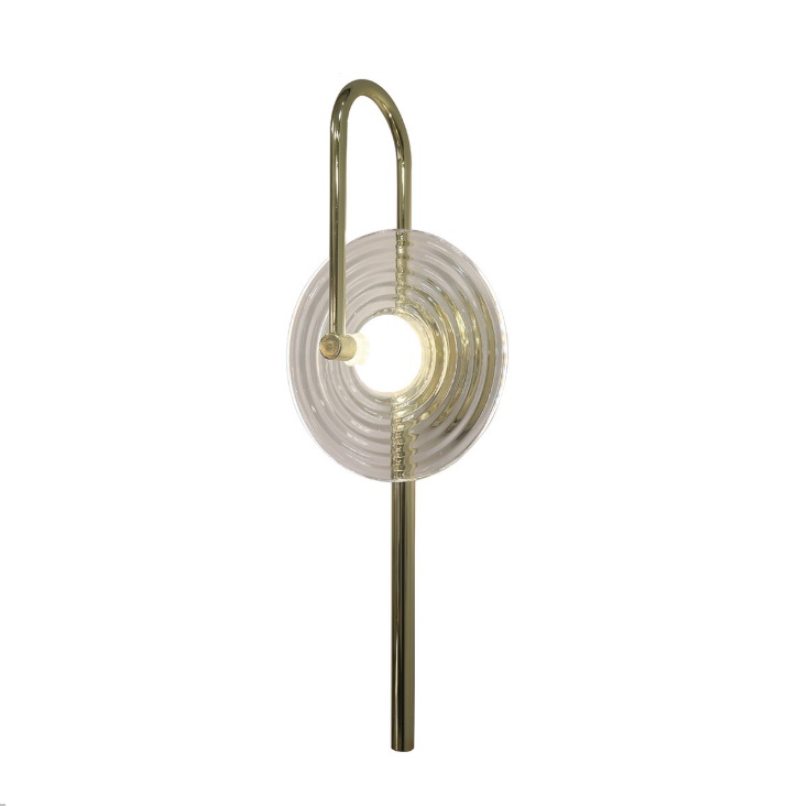 Kinkiet Plato LED złoty - dekoracyjne oświetlenie ścienne z ryflowanym szkłem