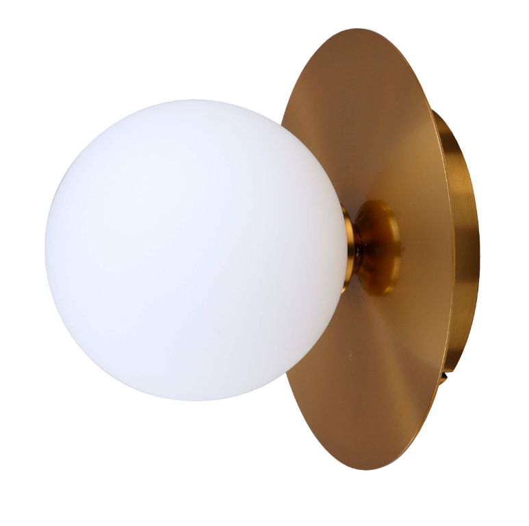 Złoty kinkiet Roma w kształcie kuli z ozdobnym dyskiem