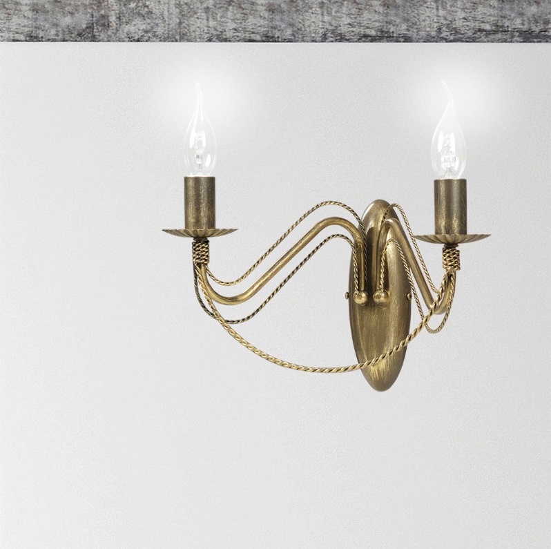 Złoty kinkiet Tori w stylu świecznikowym z dwoma źródłami E14