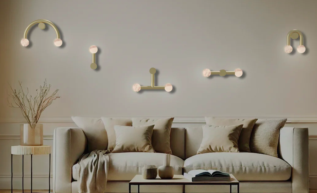 Złoty łukowaty kinkiet Rigoberta Direct z alabastrowymi kulami
