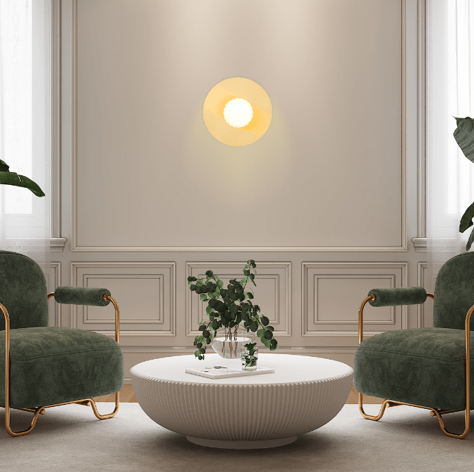 Złoty plafon lub kinkiet Paloma – ozdobny dysk z białą szklaną kulą