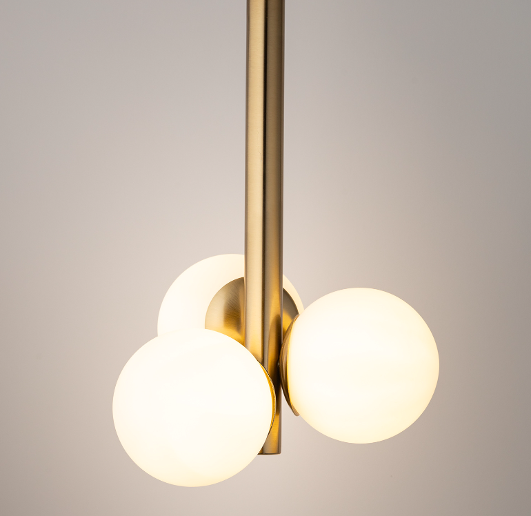 Złoty sufitowy żyrandol z kulami Brassia 3 – stylowa i wyrafinowana baza