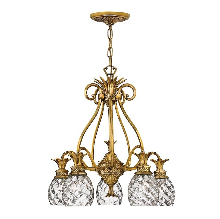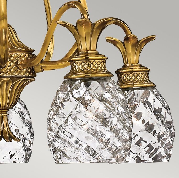 Złoty żyrandol Plantation z litego mosiądzu i optycznego szkła