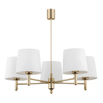 Złoty żyrandol Ponte 5 z beżowymi welurowymi abażurami
