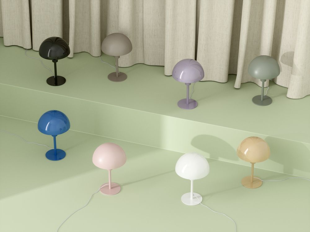Bordowa lampka stołowa Ellen Mini w kształcie grzybka na szafkę