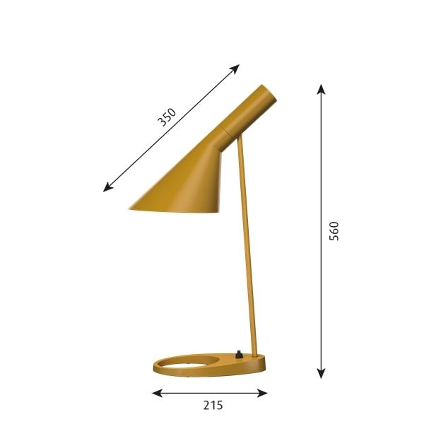 Żółta designerska lampa stołowa AJ od Louisa Poulsena