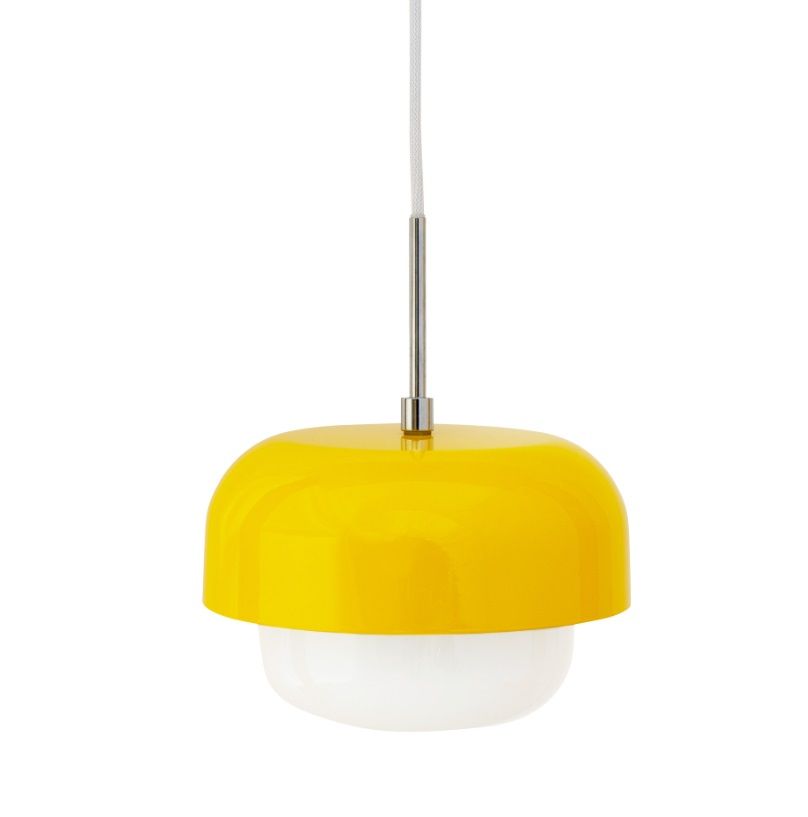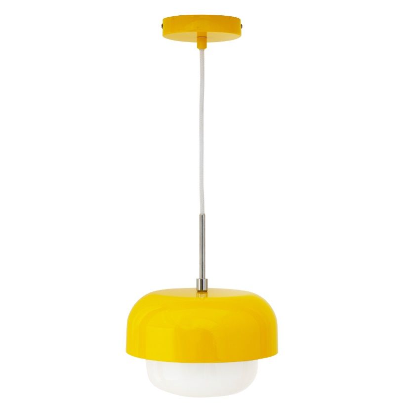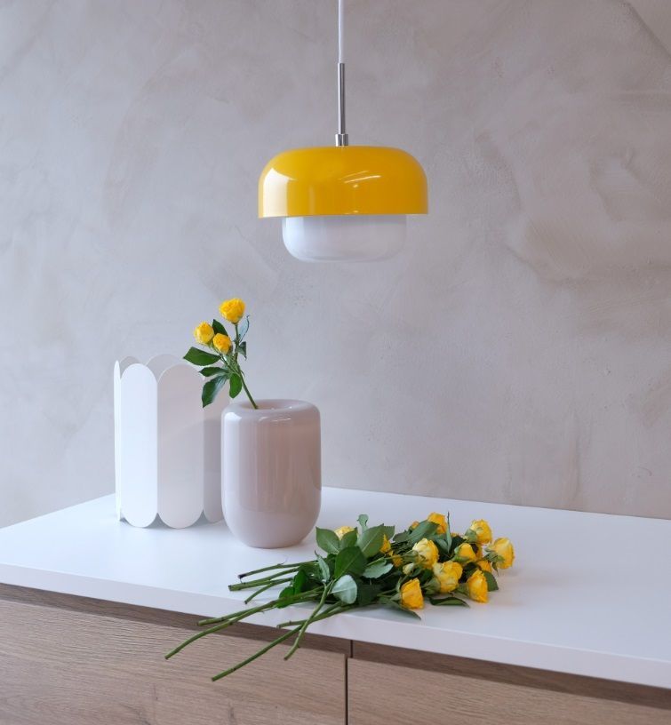 Żółta wisząca lampa Haipot w stylu retro nad kuchenny blat