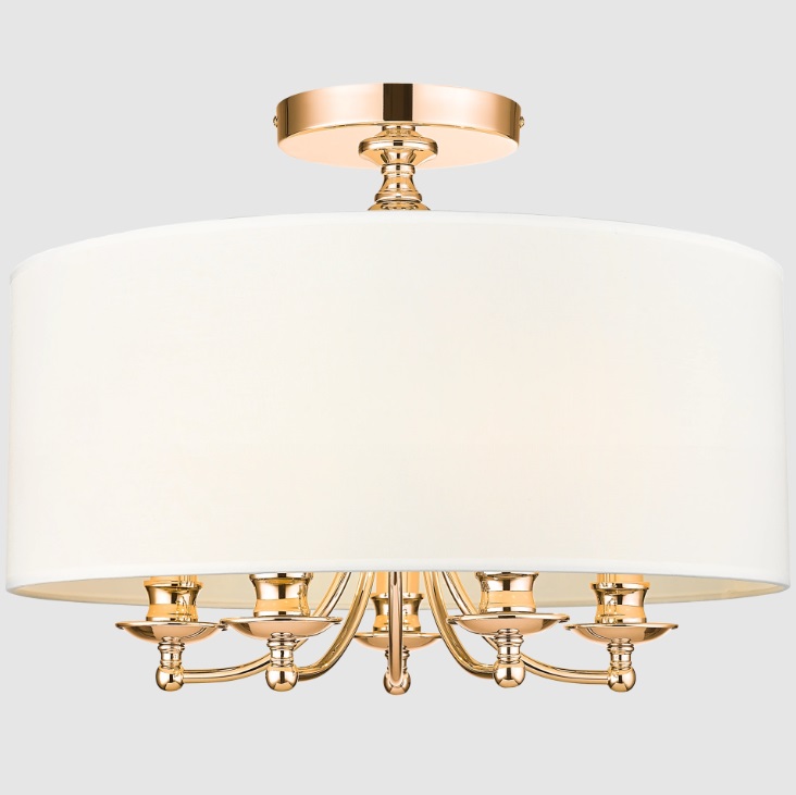 Żyrandol sufitowy Abu Dhabi 50 ze złotym stelażem i białym abażurem