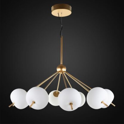 Żyrandol Apple LED 10‑płomienny ze złotym wykończeniem i mlecznymi kloszami