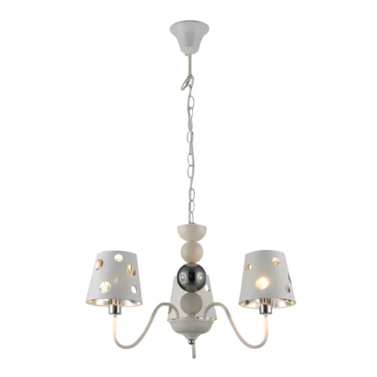 Żyrandol Batley to propozycja dla wszystkich fanów oryginalności. Wyjątkowym czynią go otwory w materiałowych abażurach. Dzięki białemu zawieszeniu, ramionom i wykończeniu, idealnie wpasuje się w pokój dziecięcy.