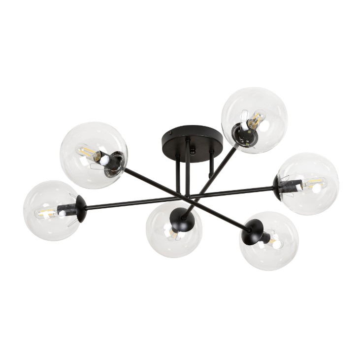 Potrzebujesz oświetlenia, które rozświetli całe pomieszczenie, a jednocześnie stanie się designerską ozdobą? Żyrandol Brendi B6 to mistrzowskie połączenie funkcjonalności z nowoczesną estetyką. Sześć szklanych kul rozłożonych symetrycznie na czarnych ramionach tworzy konstrukcję przypominającą kosmiczną konstelację, która przyciąga wzrok i nadaje wnętrzu wyjątkowy charakter.