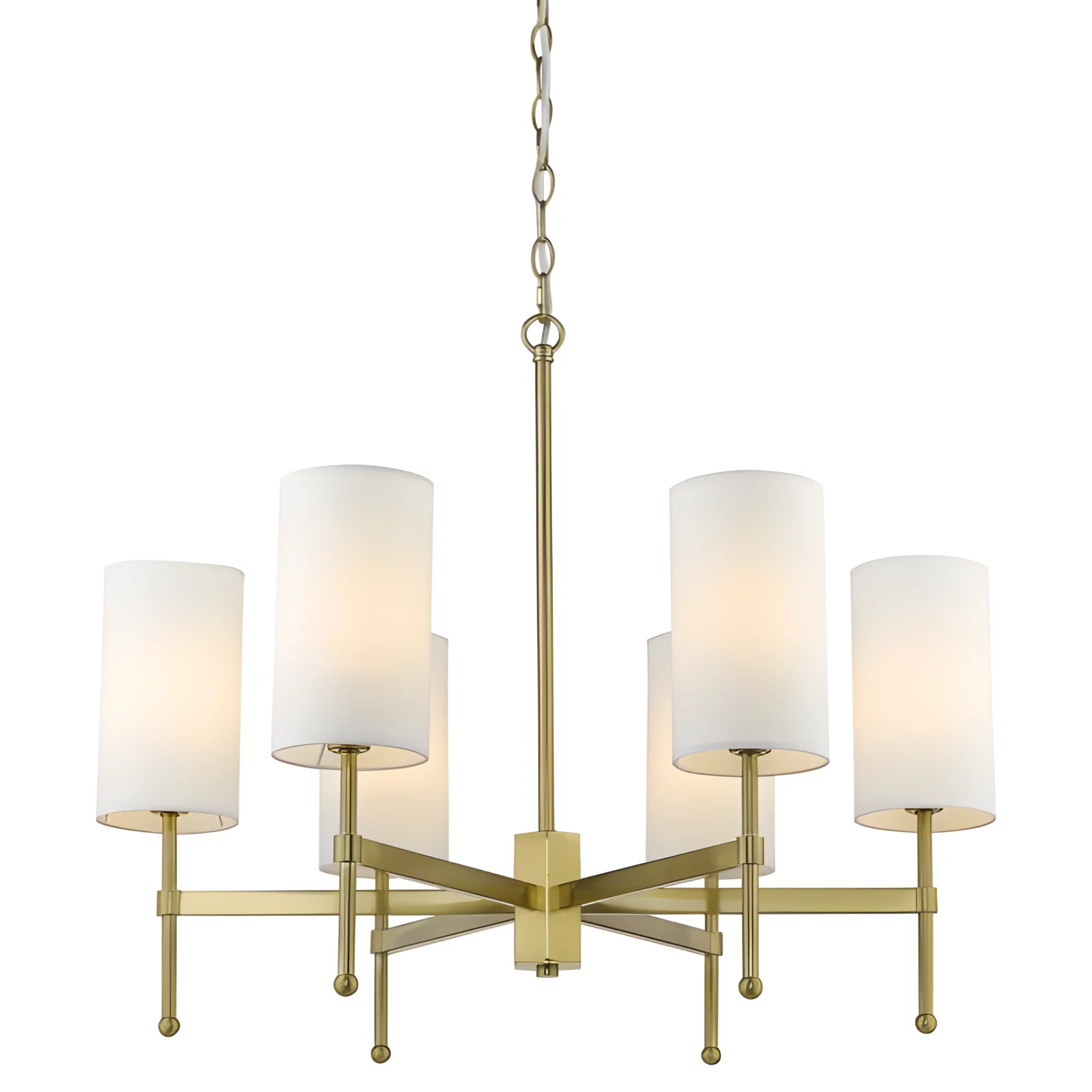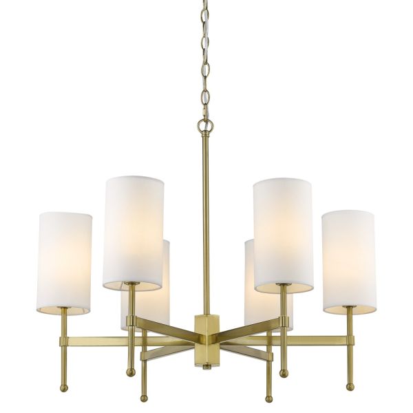 Żyrandol Denver to cudowny wybór do aranżacji w stylu modern classic. Białe abażury cudownie komponują się ze  złotym stelażem, razem tworzą doskonałą całość. Idealna propozycja nad stół w jadalni. W kolekcji są dostępne również kinkiety.