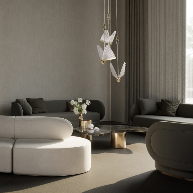Mariposa 3 to kwintesencja stylu glamour z nutą nowoczesności – świetnie komponuje się z wnętrzami w stylu modern classic, art deco czy soft glam. Wyobraź ją sobie nad marmurowym stołem w towarzystwie welurowych krzeseł lub jako główny punkt świetlny w eleganckim przedpokoju. Rozwiązuje odwieczny problem "nudnego oświetlenia" – jej forma jest na tyle intrygująca, że staje się ozdobą nawet przy wyłączonym świetle, a zintegrowane LED-y eliminują kłopot z doborem i wymianą żarówek.