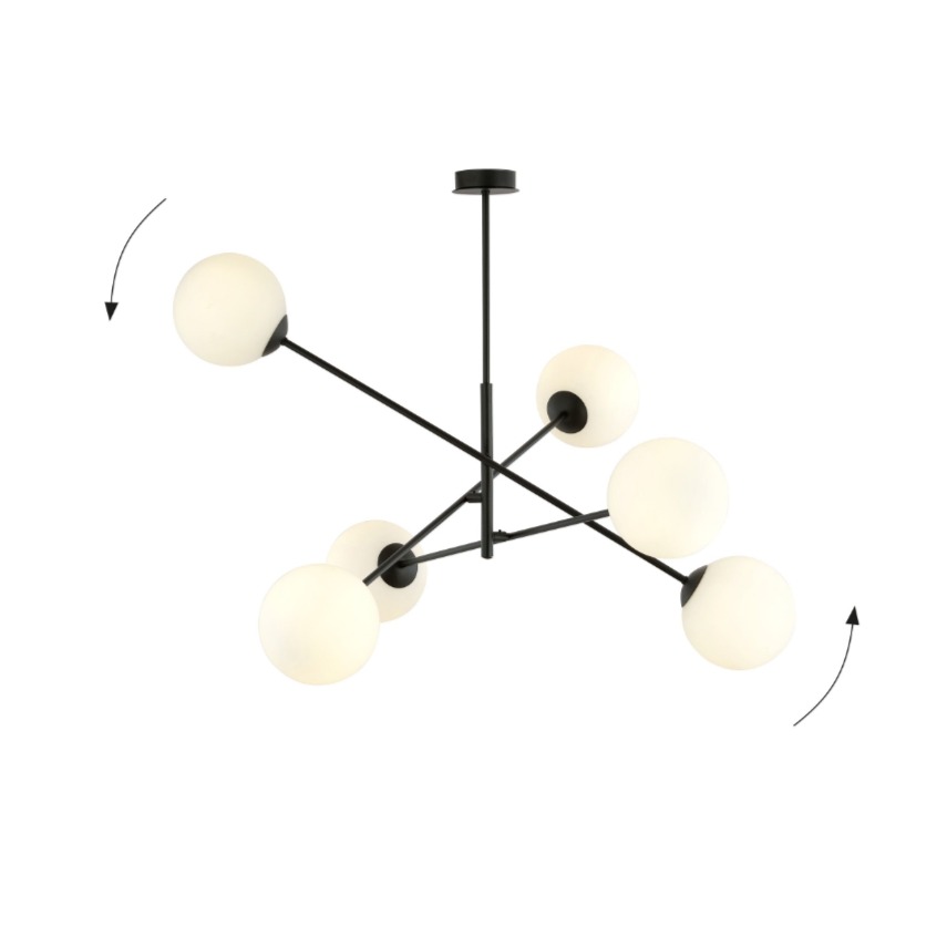Przejdź do sklepuŻyrandol Linear 6 czarny z sześcioma opalowymi kulami