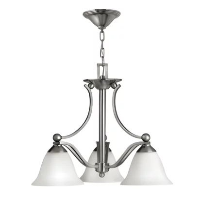 Awangardowy model żyrandola do takich pomieszczeń jak kuchnia, salon, sypialnia - od znanego producenta Ardant Decor. Charakterystyka lampy: numer katalogowy HK/BOLLA3, wykonanie - szczotkowany nikiel, białe szkło, dodatkowe informacje - klasyczny, szklane, typ trzonka żarówki E27, moc 60 W.