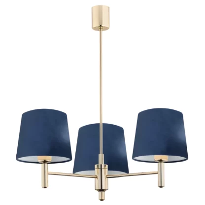 Żyrandol Ponte 3 w złotym kolorze z granatowymi abażurami