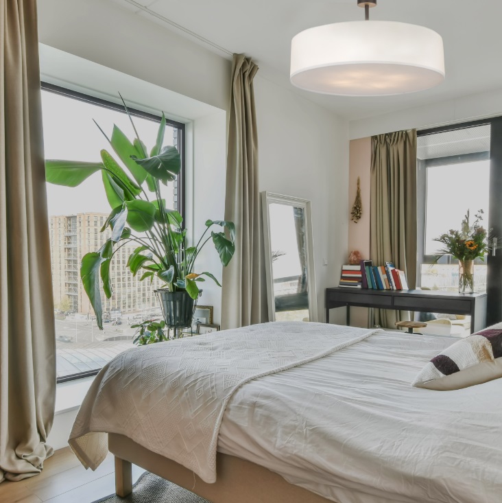 Żyrandol Rondo 60 w kolorze białym z dużym abażurem do sypialni