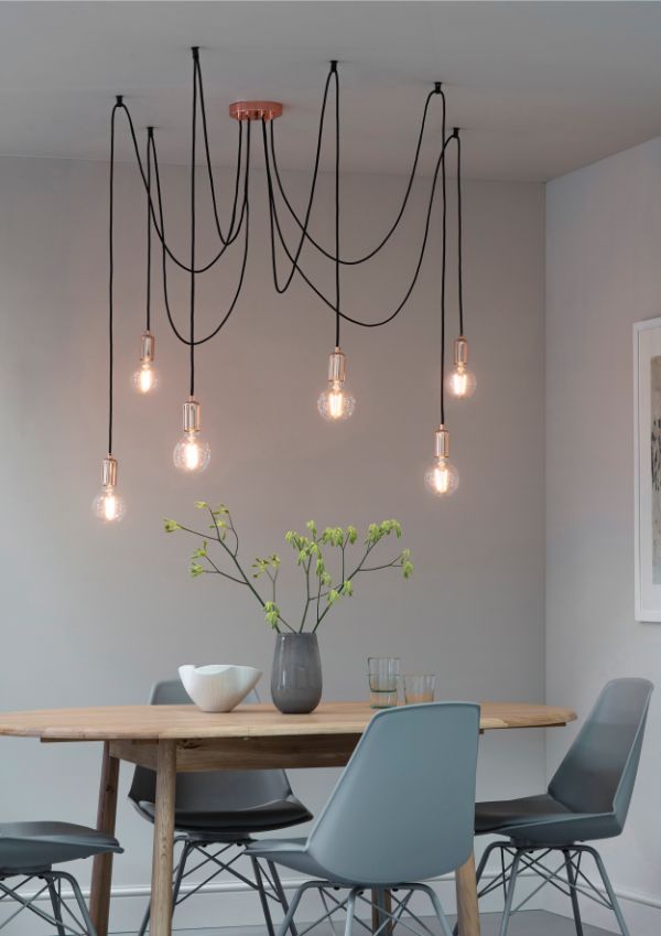 Unikatowy egzemplarz żyrandola do takich pomieszczeń jak salon - od znanego producenta Endon. Charakterystyka lampy: numer katalogowy 76580, wykonanie - miedź, czarne zawieszenia, dodatkowe informacje - styl nowoczesny, typ trzonka żarówki E27, moc 60 W.