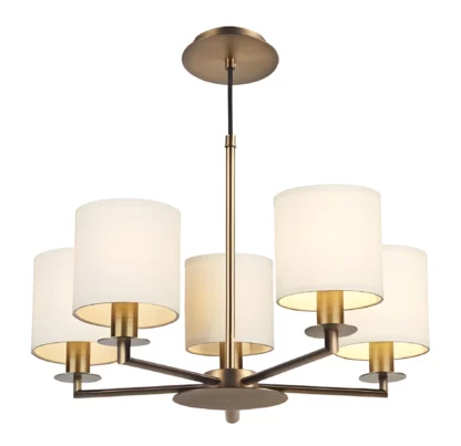 Żyrandol Tyler to prosta, ale elegancka propozycja. Charakteru dodają mu jasne klosze. Wykonanie w stylu modern classic, idealnie wpasuje się w podobne aranżacje. Dodatkowo wysokość lampy można regulować.
