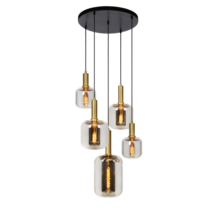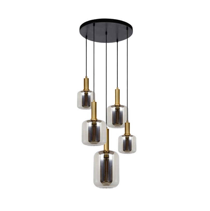 Żyrandol wiszący Joanet 5 z dymionym szkłem – elegancka lampa nad stół