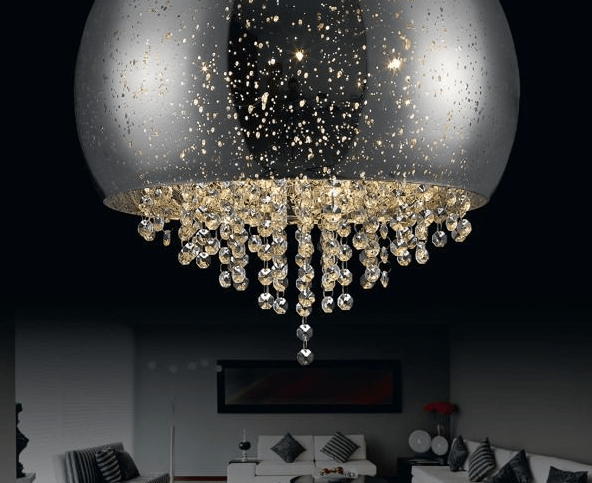 Srebrna lampa sufitowa Gladius z kryształkami